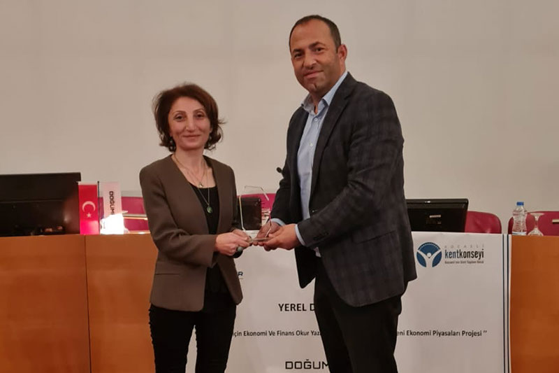 Doğumarsifed Yönetim Kurulu Başkanı Atalay Kaya, Kocaeli Üniversitesi Kariyer Geliştirme Uygulama ve Araştırma Merkezi Müdürü Doç. Dr. Bilsen Bilgili’ye plaket takdim etti.