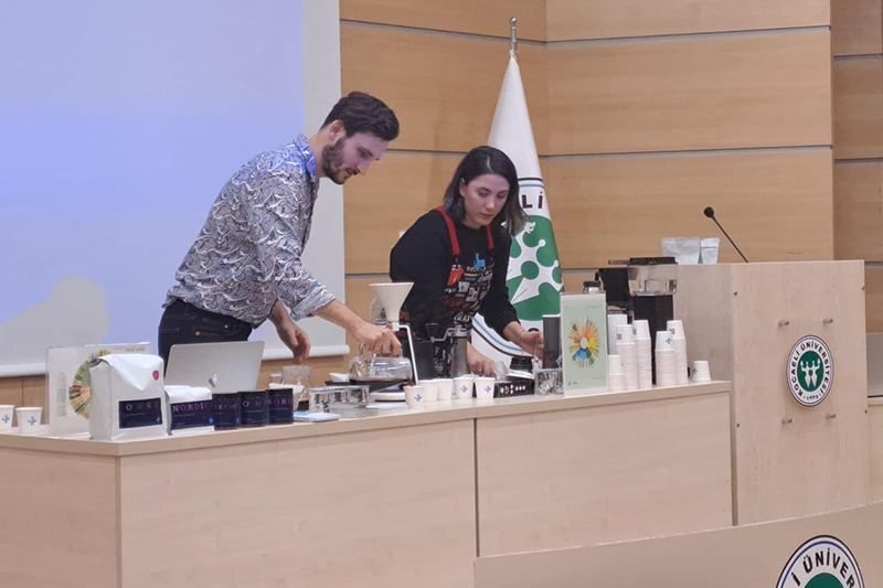 Kocaeli Üniversitesi Turizm Fakültesi Konferans Salonu'nda Ultra Coffee Roastery tarafından kahve çekim ve kahve demleme tekniklerinin anlatıldığı Nitelikli Kahveye Giriş etkinliği gerçekleştirildi.