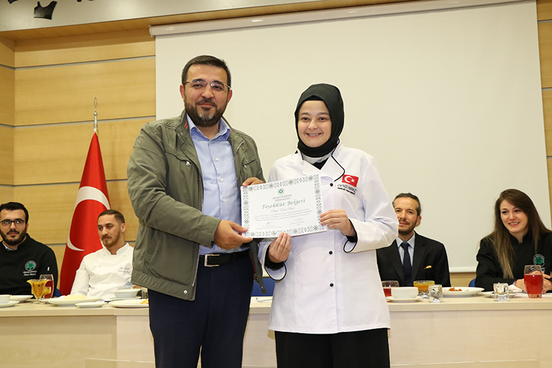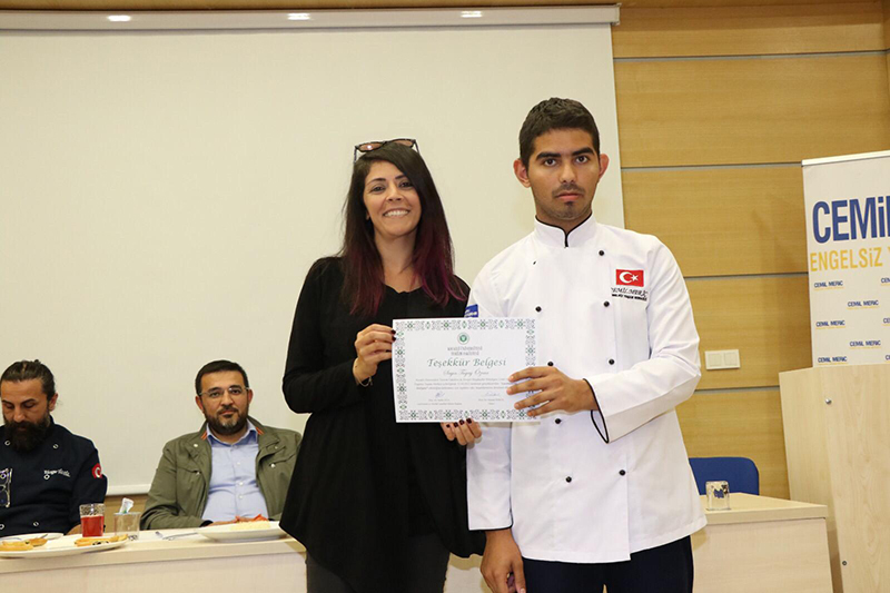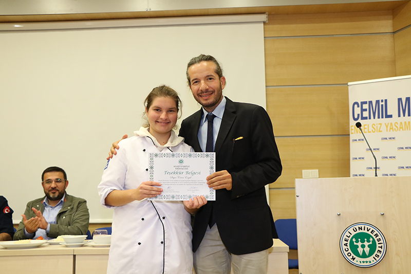 Öğrencilere Turizm Fakültesi öğretim elemanları ve Cemil Meriç Engelsiz Yaşam Merkezi personelleri tarafından sertifika takdiminde bulunuldu. Şef Rüzgar Sünbül ve Şef Uğur Girdik’in de konuk jüri üyesi olarak yer aldığı ve Kocaeli’nin yöresel yemeklerinin yapıldığı yemek yarışması, turkuaz ve turuncu takımların beraberliğiyle sona erdi.