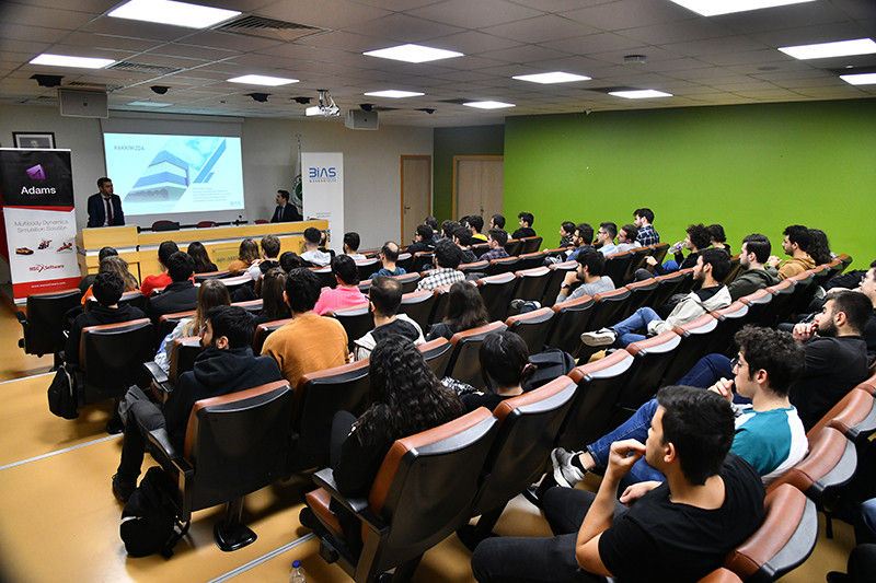 BİAS Mühendislikten CAE Satış Müdürü Gökhan Kadir Özboduç ile CAE Satış Mühendisi Sercan Yıldırım’ın konuşmacı olarak yer aldığı etkinliğe; Mühendislik Fakültesi Dekanı Prof. Dr. İlhan Tekin Öztürk, Makina Mühendisliği Bölümü öğretim üyeleri ile çok sayıda öğrenci katıldı.