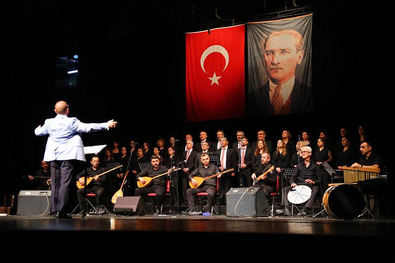 Şef Yasin Koçman yönetimindeki Türk Halk Müziği korosu, ülkemizin dört bir yöresinden birbirinden değerli türküleri seslendirdi. Büyük beğeni toplayan konserde, Cumhuriyetimizin 99. Yılı kutlamaları coşkuyla başladı.