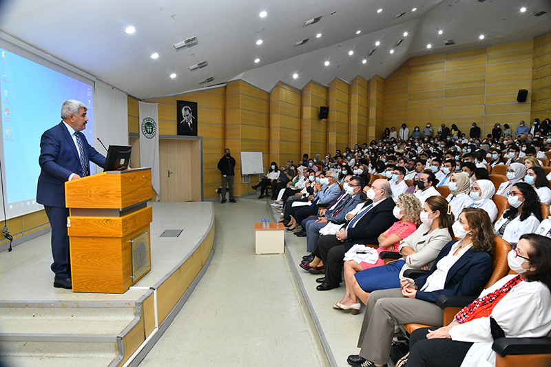 Kocaeli Üniversitesi Rektörü Prof. Dr. Sadettin Hülagü, ülkemizin en başarılı ve pırıltılı öğrencileri ile yeni bir akademik yıla başlayacak olmanın heyecanını yürekten hissettiğini ifade ederek başladığı konuşmasında “Bizlerin görevi sizlere mesleki bilgi ve beceri yanında hekimlik etiğine ilişkin insani değerleri de aşılamaktır. Kutsal hekimlik mesleğini bu bilinç ve inançla elinizden gelen en iyi şekilde yerine getireceğinize ve çok daha iyi yerlere taşıyacağınıza yürekten inanıyorum. Bizler sizlerin başarısı ve eğitimi için çabalarken aynı sevgi, saygı ve kardeşlik hisleri içerisinde sizin de olmanızı yürekten temenni ediyorum. Eğitim ve öğretim hayatınız hayırlara vesile olsun” ifadelerini kullandı.
