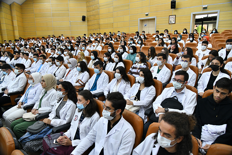 Konuşmaların ardından Rektör Prof. Dr. Sadettin Hülagü, KOÜ Tıp Fakültesi Dekanı Prof. Dr. Zafer Utkan, Dekan yardımcıları ve fakülte akademisyenlerince öğrencilere beyaz önlükleri giydirildi.