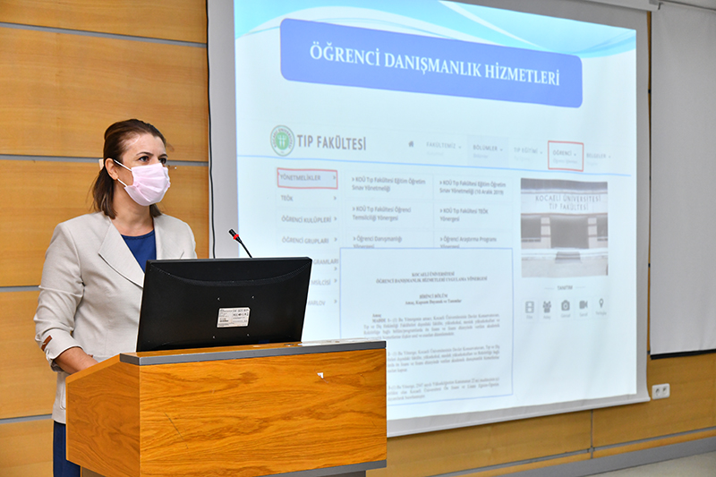 Kocaeli Üniversitesi Tıp Fakültesi’nin tanıtım filmi ile başlayan törende, fakülte öğrencilerinden İnt. Recep Şeker edindiği deneyimlerini fakülteye yeni başlayan öğrencilerle paylaşarak, tavsiyelerde bulundu. KOÜ Tıp Fakültesi Dönem I Koordinatörü Doç. Dr. Fatma Ceyla Eraldemir de konuşmasında Kocaeli Üniversitesi Tıp Fakültesi hakkında tanıtıcı bilgiler paylaşarak, öğrenci danışmanlık hizmetlerinin önemine değindi.