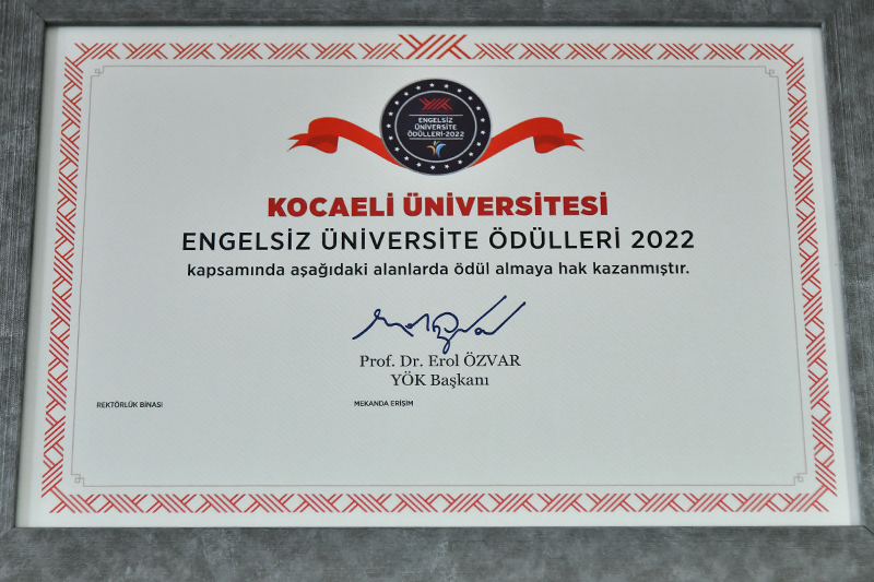 Bu yıl Engelsiz üniversite ödülleri için 114 Üniversitemizden toplam 1074 başvuru yapıldı. Yapılan değerlendirme ve incelemeler sonucunda da, Kocaeli Üniversitesi Rektörlük Binası, YÖK tarafından Mekânda Erişebilirlik-Turuncu Bayrak ile ödüllendirildi.