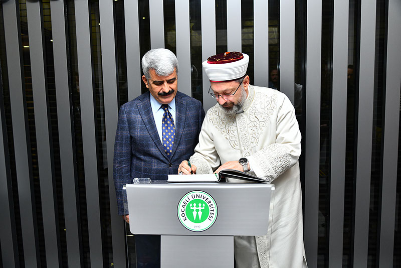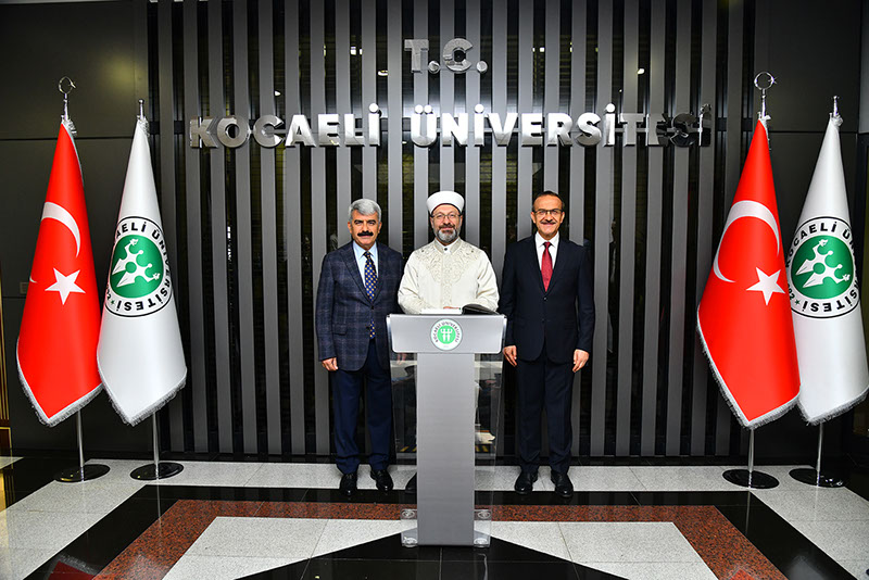 Diyanet İşleri Başkanı Prof. Dr. Ali Erbaş ise Kocaeli Üniversitesi’nin son yıllarda göstermiş olduğu gelişimin takdire şayan olduğunu söyledi. Rektörümüz Prof. Dr. Sadettin Hülagü öncülüğünde üniversite yönetimi ile akademik ve idari personelin yapmış olduğu katkıların Kocaeli Üniversitesi’nin sadece ülkemizde değil dünyada da ses getiren çalışmalara imza attığını ve görünürlüğünü arttırdığını belirtti. Kocaeli Üniversitesi’nin bu azim ve çaba ile çok kısa sürede Araştırma Üniversiteleri arasında yer alacağına inancının tam olduğunu aktaran Prof. Dr. Ali Erbaş, Rektörümüz Prof. Dr. Sadettin Hülagü’ye teşekkür ederek, başarılar diledi.
