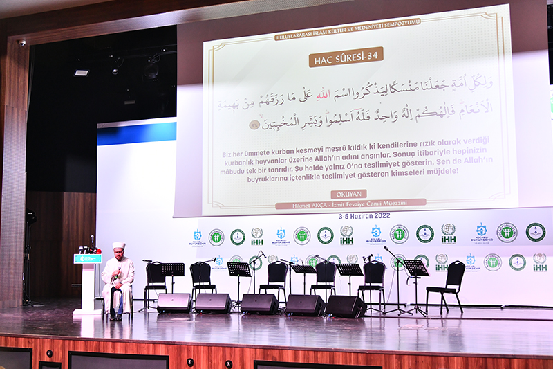 Kocaeli Üniversitesi İlahiyat Fakültesi Tasavvuf Mûsikîsi Korosu tarafından mûsikî dinletisi sunulmasıyla başlayan sempozyumda, saygı duruşunda bulunulması ve İstiklal Marşı’nın okunması ardından İzmit Fevziye Camii Müezzini Hikmet Akça tarafından Kur'an-ı Kerim Tilaveti gerçekleştirildi. Sempozyum selamlama konuşmalarında ise İlahiyat Fakültesi Dekanı Prof. Dr. Abdullah Kahraman, sempozyum içeriği hakkında bilgiler sunarken, İHH Başkanı Bülent Yıldırım ise İHH Vakfı'nın yardımlarını, gittikleri ülkelerdeki anılarına değindi. Kurban ibadetinin yardımlarda önemli olduğunu belirten Yıldırım, bu sayede İslam ülkelerini tanıdıklarını, o ülkelere yaklaştıklarını belirtti. Din İşleri Yüksek Kurulu olarak yürüttükleri çalışmalara değinen Din İşleri Yüksek Kurulu Başkanı Prof. Dr. Abdurrahman Haçkalı, manevi değerlerimizin özellikle çocuklarımıza iyi aktarılması gerektiğinin altını çizdi.