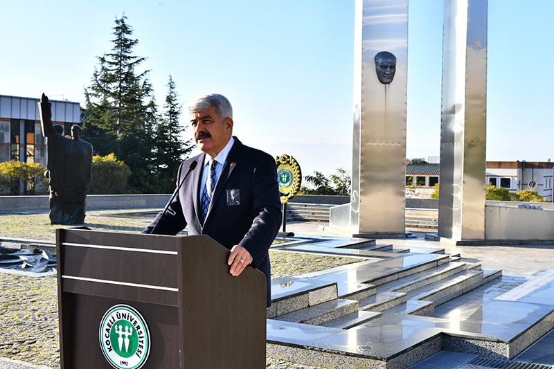 Kocaeli Üniversitesi Ailesi olarak bugün her birimiz manevi şahsiyetini hatırlamak ve milletimizle birlikte verdiği mücadeleyi özümsemek durumundayız. Zira Geçmişte olduğu gibi bugün de alçak heves ve ihtiraslarla ülkemizin ikbaline göz dikmeye tenezzül eden hainler mevcuttur, ve mateessüf olacaktır. Bu hainliğe yeltenen her kim varsa Atatürk’ü en kalbi duygularla andığımız bugün bilmelidir ki, Kocaeli Üniversitesi Ailesi geçmişte olduğu gibi her zaman Cumhuriyetin yılmaz savunucusu olmaya, milleti canından üstün tutan bireyler yetiştirmeye devam edecektir.