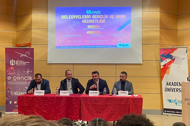 Kocaeli Büyükşehir Belediyesi Gençlik ve Spor Hizmetleri Daire Başkanı Şemsettin Yıldırım, Gençlik Hizmetleri Şube Müdürü Fatih Dizdar ve Spor Şube Müdürü Alparslan Arslan’ın konuşmacı olarak katıldığı panele öğretim elemanları ve öğrenciler büyük ilgi gösterdi.