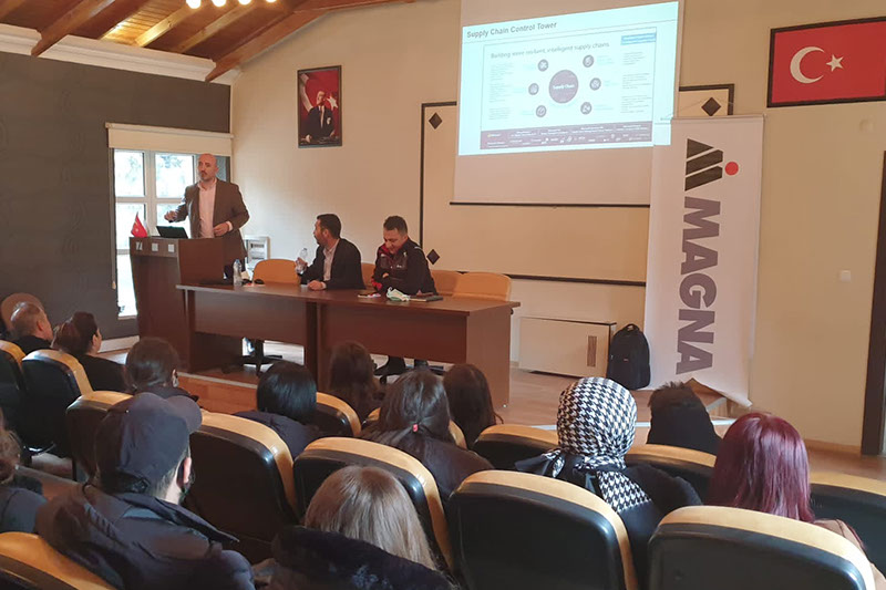 Hereke Ömer İsmet Uzunyol MYO Lojistik programında öğrenim gören ve mezun öğrencilerin, istihdam edilebilmeleri amacıyla Kocaeli’ de faaliyet gösteren Magna Otomotiv Sanayi ve Ticaret A.Ş. temsilcileriyle Üniversite - Özel Sektör İşbirliği bilgilendirme semineri 16 Mart’ta yapıldı. Toplantıda İnsan Kaynakları Müdürü Necmettin Yıldırım, Operasyon Müdürü Gökhan Haliloğlu ve Lojistik Müdürü Murat Hisarvant lojistik alanındaki yeniliklerden ve kariyer planlaması konularında öğrencilerimize seminer verdiler. İlgili seminerde iş başında yetişme eğitimleri ile okul sonrası iş imkânları gibi konular ele alınmıştır. Toplantı sonrasında Okul Müdürümüz Prof. Dr. Elif Öğüt, Bölüm Başkan Yardımcımız Dr. Öğr. Gör. Çağlar Pehlivan ve Lojistik Programı Sorumlumuz Doç. Dr. Rıdvan Karacan tarafından sektör temsilcilerine teşekkür belgeleri takdim edildi.