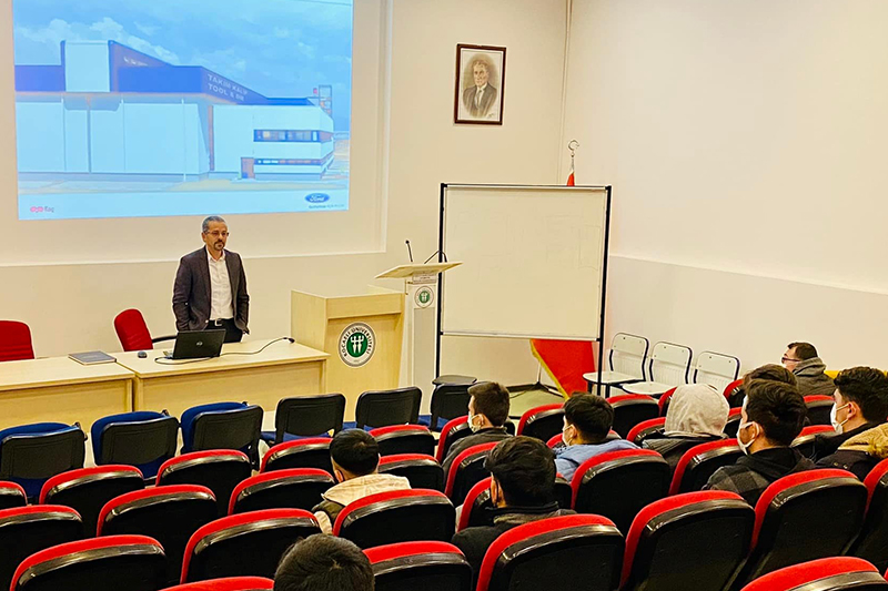 Kariyer Planlama dersi kapsamında düzenlenen bir diğer seminerde ise Ford OTOSAN Mesleki Eğitim Akademisi (FOMEA Akademi) Lideri Hüseyin Yakup Temur öğrencilerle buluştu. “Endüstriyel Kalıpçılığın Sektördeki Önemi ve Kariyer Yolculuğu” konulu seminer Endüstriyel Kalıpçılık öğrencileri tarafından ilgi ile dinlendi.