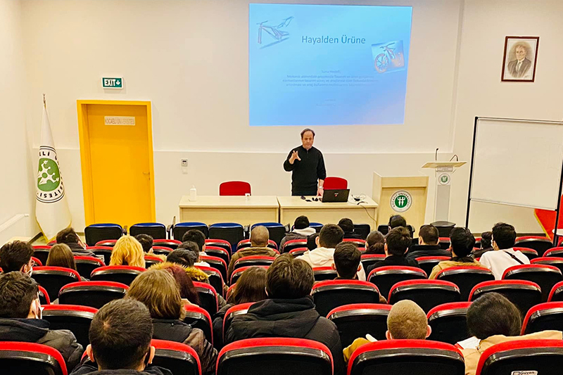 Bir iletişim dili olan teknik resim, imalat ve tasarım bağlantılarının vurgulandığı seminerde mesleğin önemi anlatıldı. Sektörde tasarımcının önemi, seviye 3-4-5 farkları, tolerans, imalatı yönlendirme gibi mesleki bilgilerin de aktarıldığı seminerde üretim tekniklerinin bilinmesinin gerekliliği de belirtildi. Bu mesleğin sorumlulukları ve meslekte ilerlemek için sahip olunması gereken yeterlilikler belirtilerek akademik kariyer sürecine geçiş yapıldı. Öğrencilerimizin sorularının yanıtlanması ile seminer sona erdi.