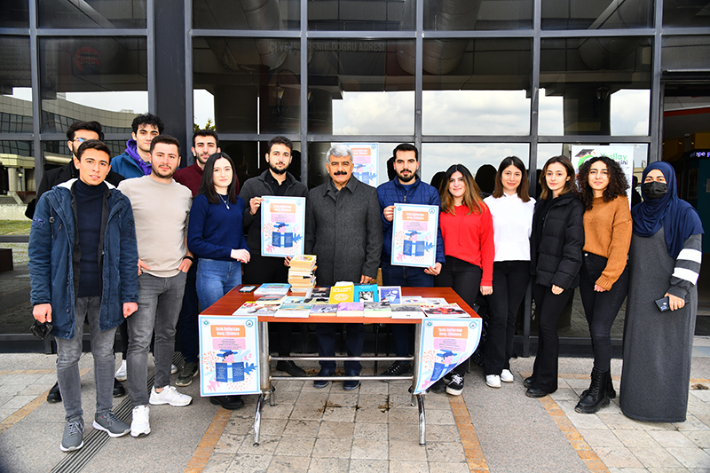 Kocaeli Üniversitesi Türkçe Öğretmenliği Kulübü (Türkçede İZ) tarafından düzenlenen kitap toplama kampanyasına, Rektörümüz Prof. Dr. Sadettin Hülagü de kitap bağışlayarak destek verdi.