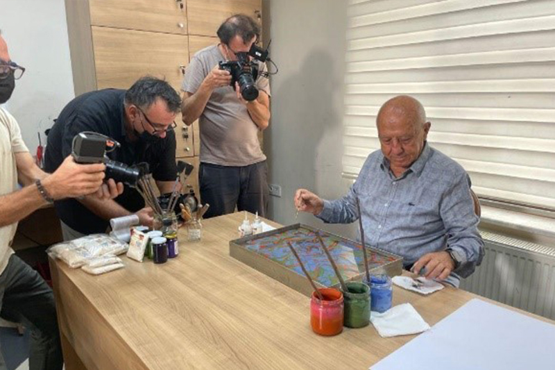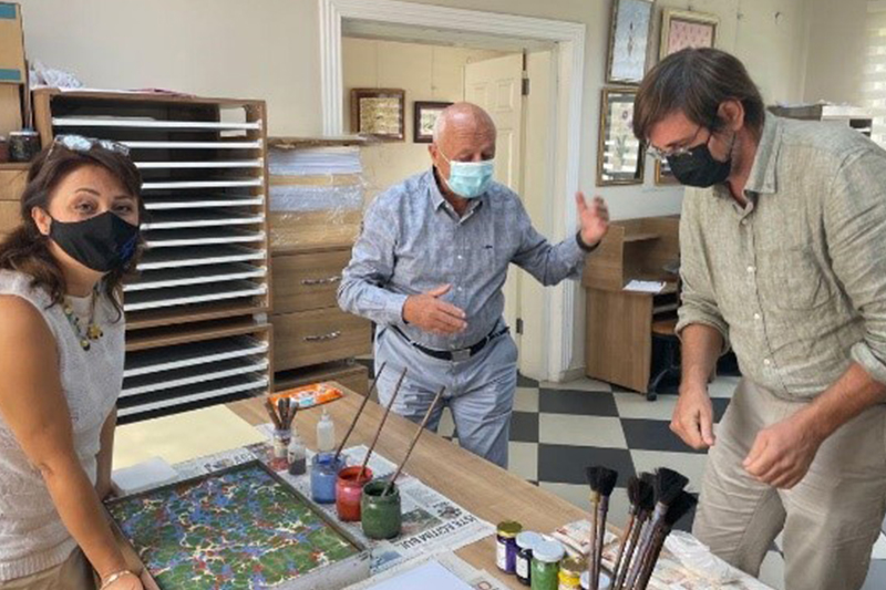 Daha sonra Kocaeli Üniversitesi Kültür Evi’ni ziyaret ederek burada Kültür Evi Müdürü Güzel Sanatlar Fakültesi Geleneksel Türk Sanatları Bölüm Başkanı Dr. Öğr. Üyesi Yıldırım Karadeniz tarafından kültür ve sanatımız hakkında bilgi verildi. Özellikle Kitap sanatlarımız arasında yer alan Ebru sanatında kullanılan kitrenin hammaddesinin yosundan elde edildiğini öğrenen Cinelli, gelmeden önce yaptıkları araştırmalarda Osmanlı döneminde Sultan Hamamlarında yosun masajı yapıldığını okuduğunu, ancak “Ebru” sanatında yosunun kullanıldığını ilk defa burada öğrendiğini ve bu ziyaretin kendileri için çok etkileyici olduğunu, Ebru sanatının en ince ayrıntılarını kitrenin hazırlanmasından eserin uygulanma aşamasına kadar bize gösterdiği ve gerçek bir sanat eserinin doğuşunu izleyip filme almalarını sağladığı için Dr. Öğr. Üyesi Yıldırım Karadeniz’e teşekkür eden Profesör Cinelli, böylesine muhteşem bir sanatın tüm dünyada daha iyi tanınması gerektiğini düşündüğünü, tekniği, uygulanışı ve ortaya çıkan benzersiz örneklerine daha önce yağlı boya resimler yapan biri olarak hayran kaldığını, ilk "algolojik" gezileri hakkında yorum yaptıklarında bunun gerçekten en olağanüstü deneyim olduğunu ifade etti.