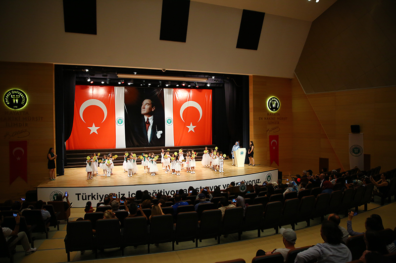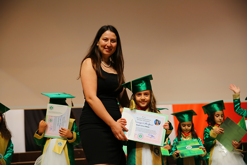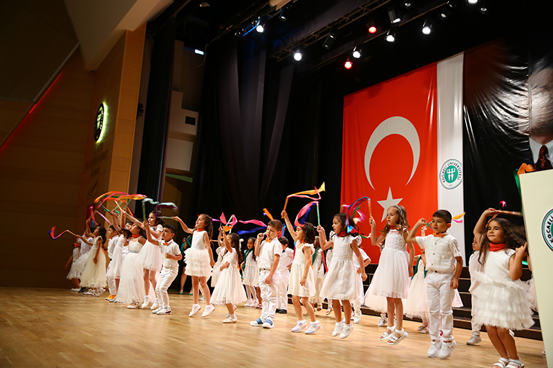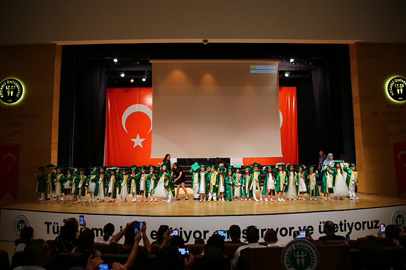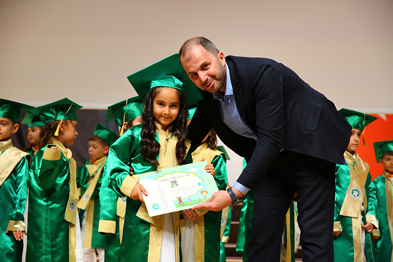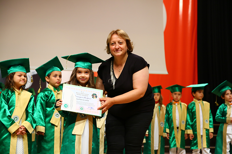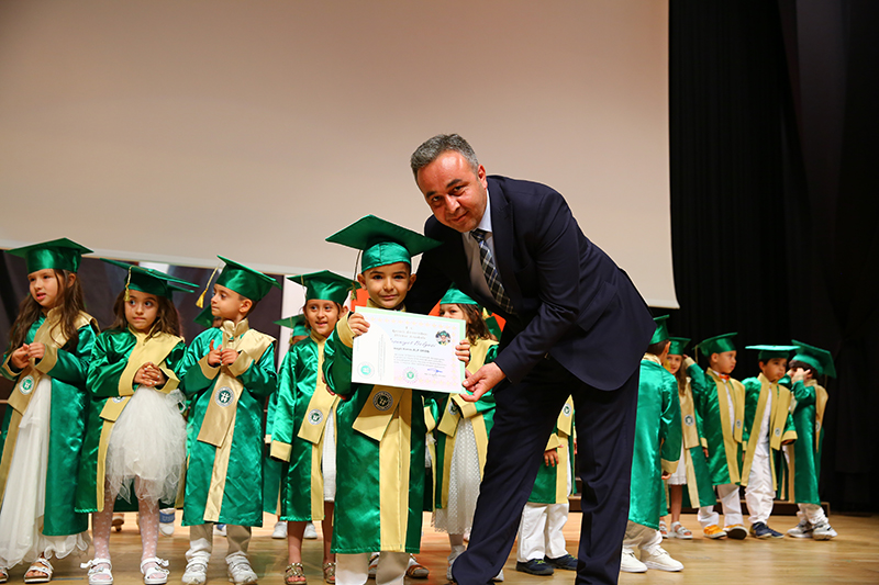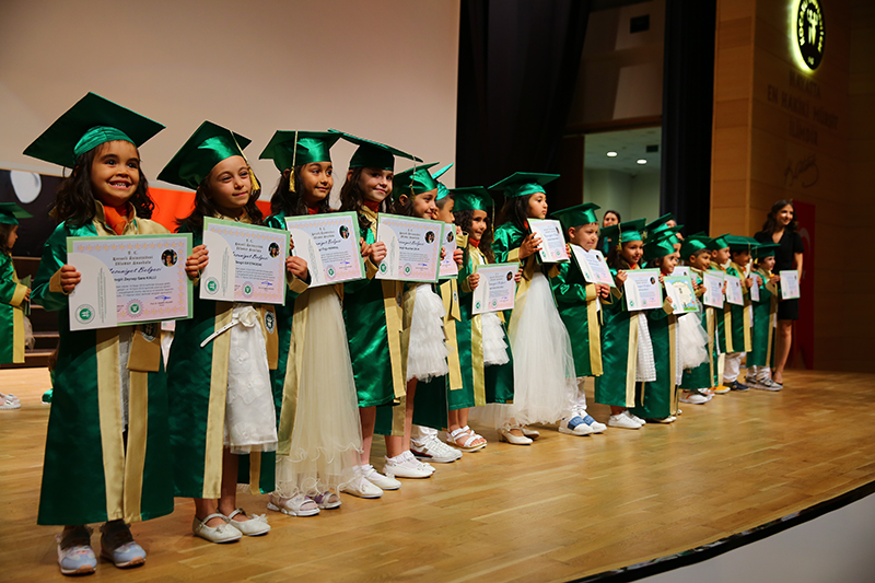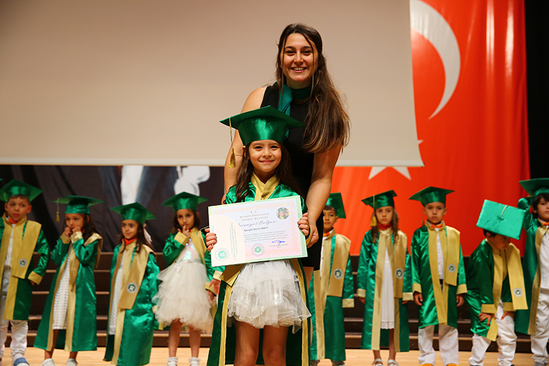 Prof. Dr. Baki Komsuoğlu Kültür ve Kongre Merkezi’nde düzenlenen tören, saygı duruşunda bulunulması ve İstiklal Marşı'nın okunmasıyla başladı. Gökyüzü kâşifleri ile deniz yıldızları mezuniyet töreninde çeşitli dans gösterileri yaptılar. İlk mezuniyet sevinçlerini aileleriyle birlikte yaşayan minikler, babalarına da sürpriz yaparak, babalar gününü kutladılar. Mezuniyet belgelerini alan minikler, birlikte şarkılar söyleyerek keplerini havaya fırlattılar.