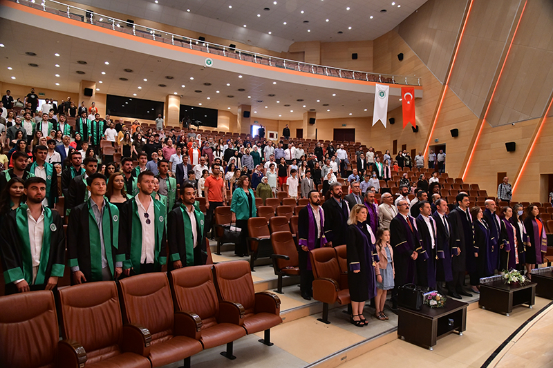 Saygı duruşunda bulunulması ve İstiklal Marşı'nın okunması ile başlayan törenin açılış konuşmalarında Dekan Prof. Dr. Oğuzhan Urhan, mezun olan öğrencilere gelecek hedeflerinde başarılar dilediler. Öğrenciler adına ise Ahmet Burak Arabacı teşekkür konuşmasını gerçekleştirdi.