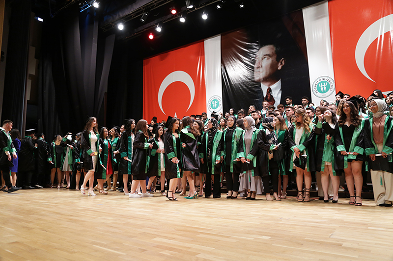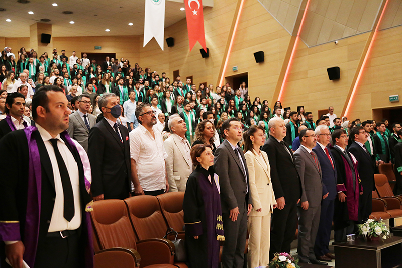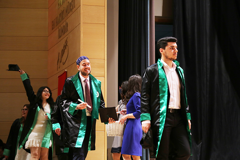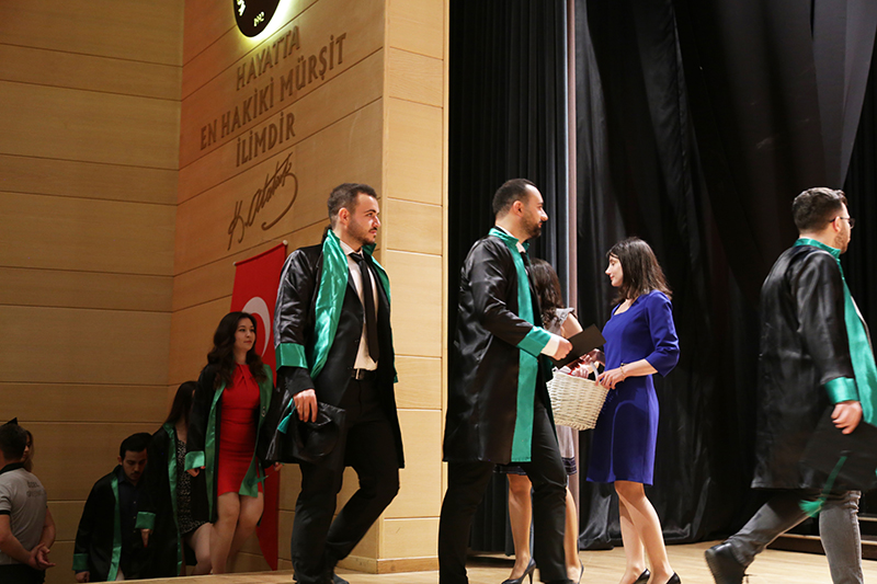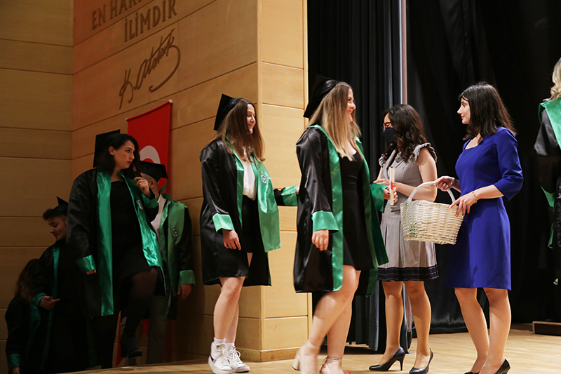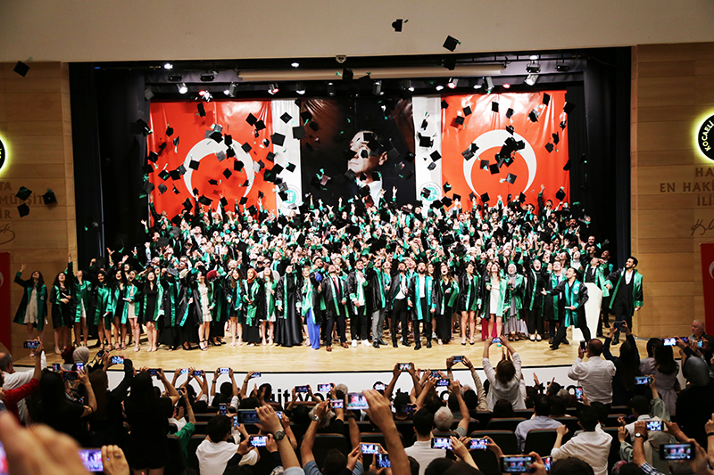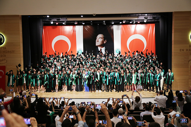 500 öğrencinin mezuniyet heyecanı yaşadığı törende, mezun olan öğrenciler anı belgelerini öğretim elemanlarından teslim aldı. Tören, öğrencilerin kep atması ile sona erdi.