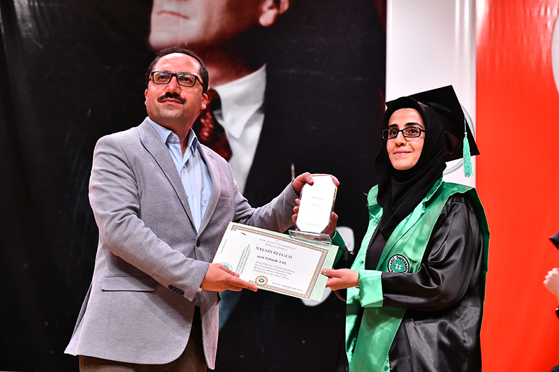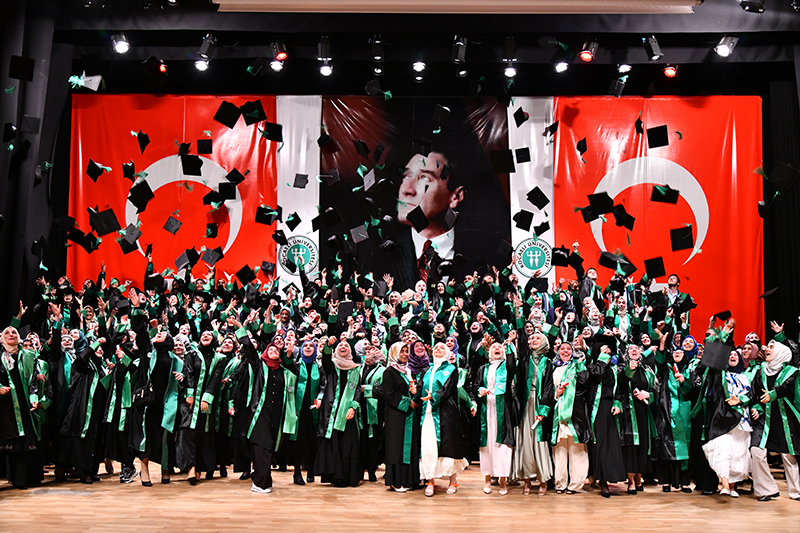 Pandemi nedeniyle geçmiş dönemlerde mezuniyet heyecanı yaşayamayan mezun öğrencilerin de katıldığı törende; 400 öğrenci mezuniyet sevinci yaşarken, mezun öğrenciler anı belgelerini öğretim elemanlarından aldı. Tören, öğrencilerin birlikte kep atması ile sona erdi.