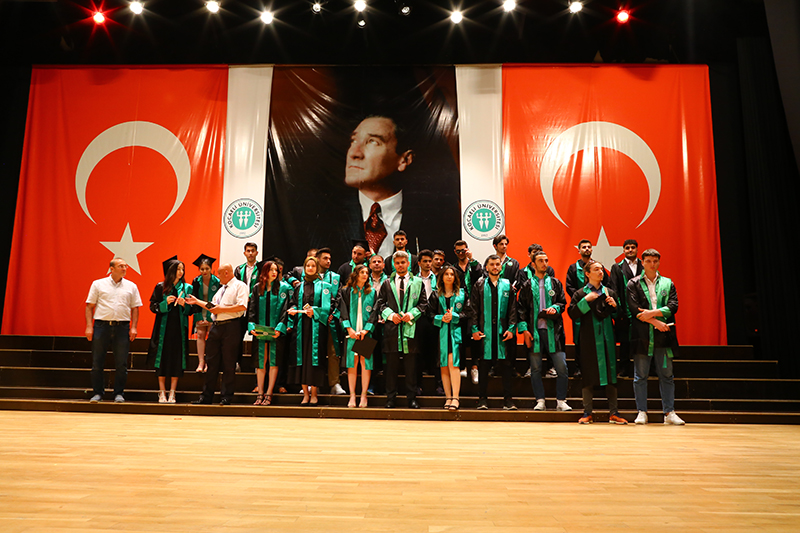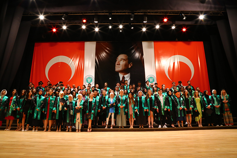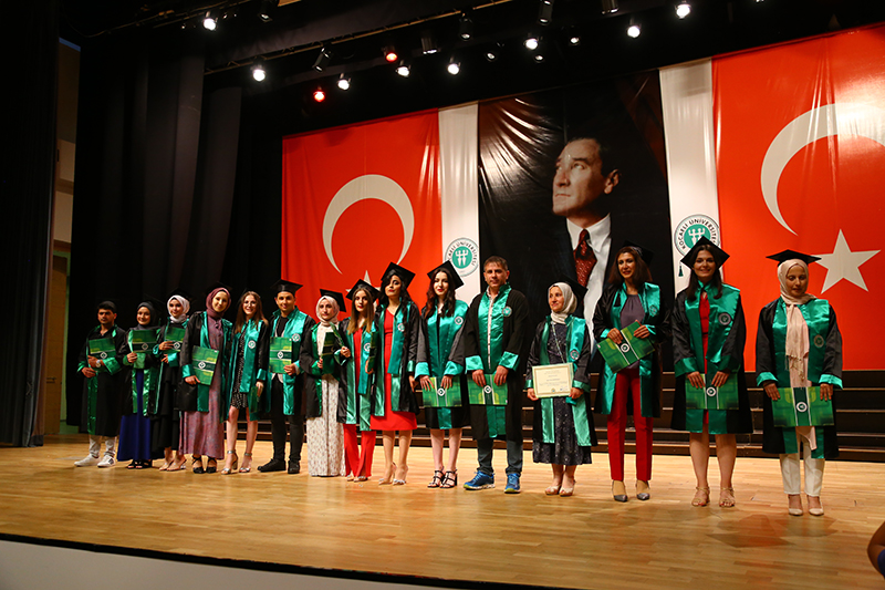 Mülkiyet Koruma ve Güvenlik, Gıda İşleme, Bitkisel ve Hayvansal Üretim ile Çevre Koruma Teknolojileri bölümlerinden toplam 800 öğrencinin mezuniyet heyecanı yaşadığı tören öğrencilerin kep atması ile sona erdi.