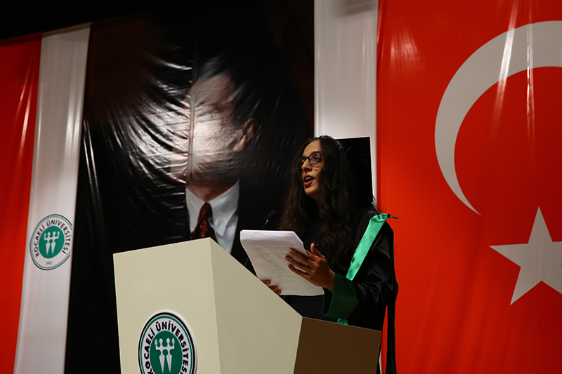 Saygı duruşunda bulunulması ve İstiklal Marşı'nın okunması ile başlayan törenin açılış konuşmalarında, Kocaeli Meslek Yüksekokulu Müdürü Prof. Dr. Cenk Çelik, mezun olan öğrencilere gelecek hedeflerinde başarılar diledi. Öğrenciler adına ise Tuğçe Kıransoy teşekkür konuşmalarını gerçekleştirdi. Bölümlerinde dereceye giren öğrencilere de plaket verilen törende, mezun öğrenciler anı belgelerini öğretim elemanlarından aldı. Tören, öğrencilerin birlikte kep atması ile sona erdi.