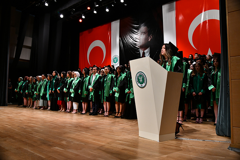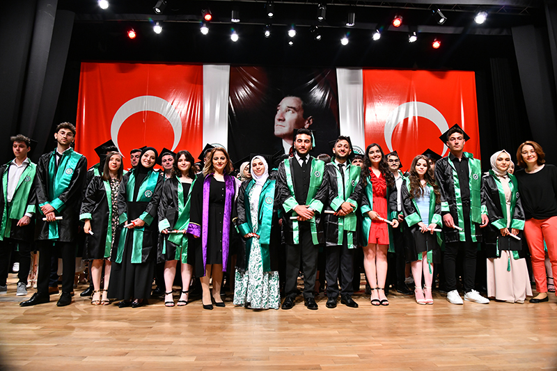 Tıbbi Laboratuvar Teknikleri, Tıbbi Dokümantasyon ve Sekreterlik, İlk ve Acil Yardım, Anestezi, Tıbbi Görüntüleme Teknikleri, Podoloji ile İş ve Uğraşı Terapisi programlarından 600 öğrencinin mezun olduğu törende mezun olan öğrenciler anı belgelerini öğretim elemanlarından teslim aldı. Meslek andının okunmasının ardından tören, öğrencilerin kep atması ile sona erdi.