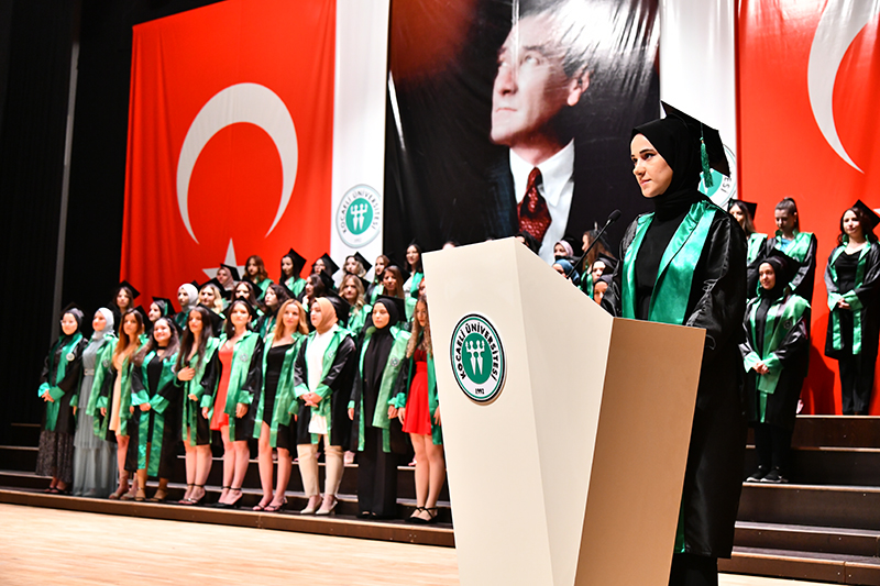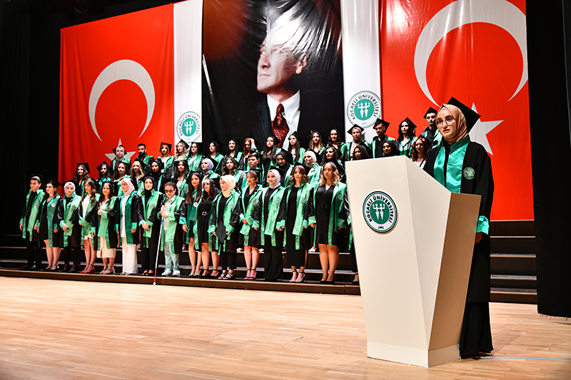Saygı duruşunda bulunulması ve İstiklal Marşı'nın okunması ile başlayan törenin açılış konuşmalarında Rektör Yardımcısı Prof. Dr. Ercüment Çiftçi ve Sağlık Bilimleri Fakültesi Dekanı Prof. Dr. Görkem Aksu mezun olan öğrencilere gelecek hedeflerinde başarılar dilediler. Öğrenciler adına ise Hemşirelik Bölümü'nden Gülcan Yılmaz, Ebelik Bölümü'nden Dilan Mama ve Sosyal Hizmet Bölümü'nden Betül Arslan teşekkür konuşmalarını gerçekleştirdi.