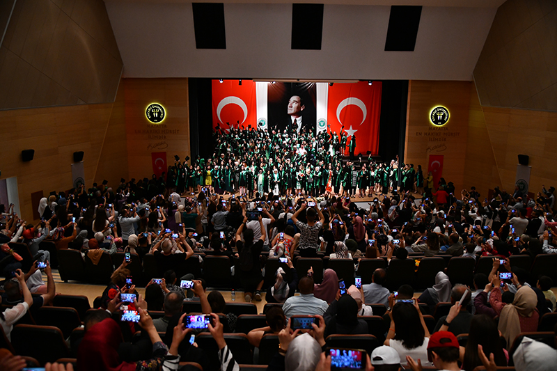 230 öğrencinin mezuniyet heyecanı yaşadığı törende, mezun öğrenciler, mesleki yeminlerinin ardından, hep birlikte kep attı.