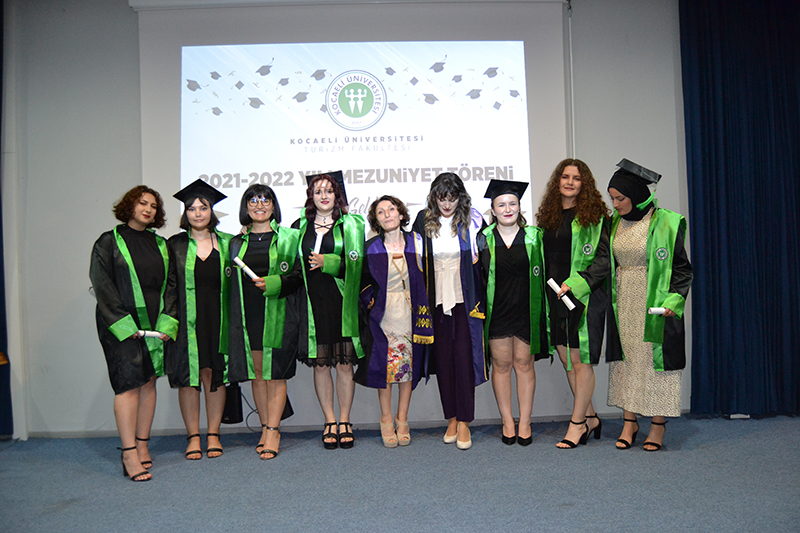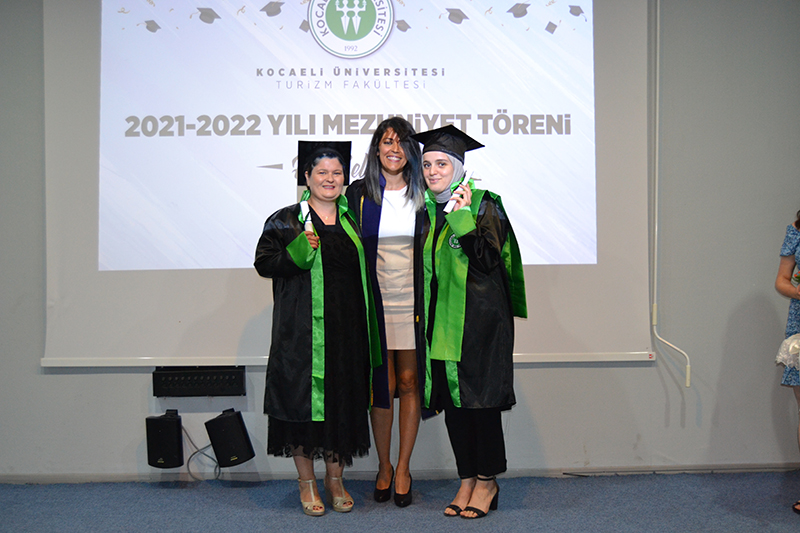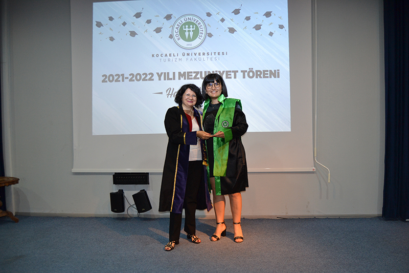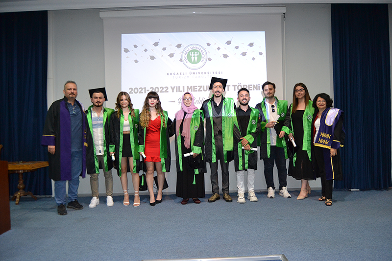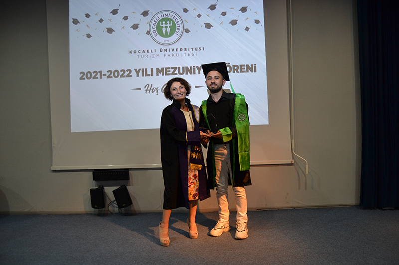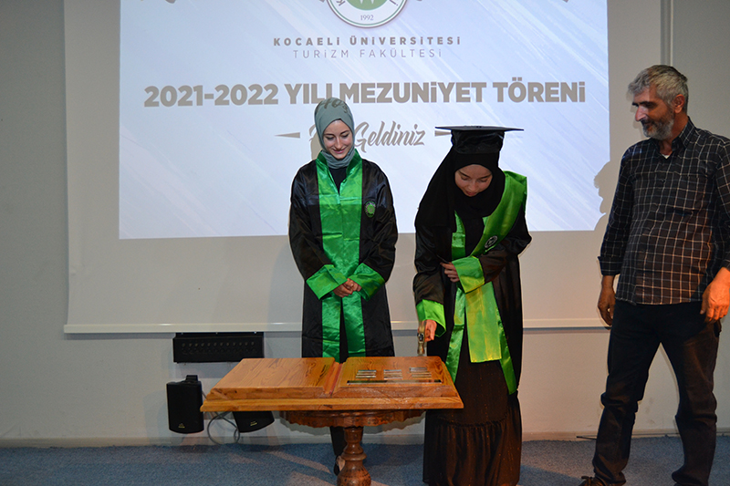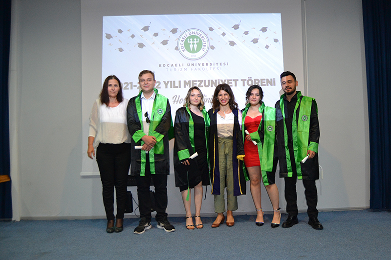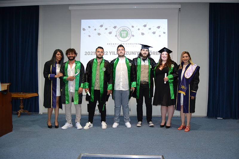 Mezuniyet heyecanının yaşandığı törende, dereceye giren öğrencilere plaket verildi. Mezuniyet kütüğüne 2020-2021 fakülte birincisi Elif Betül Kılıç ile 2021-2022 fakülte birincisi Sena Çengelköy’ün isimlerinin işlenmesinden sonra, öğrencilere mezuniyet belgeleri verildi. Törenin son kısmında gerçekleşen kep atma seremonisinin ardından Turizm Fakültesi bahçesinde öğrencilere ve velilere Gastronomi ve Mutfak Sanatları öğrencilerinin hazırladığı ikramlıklar sunuldu. Fakülte bahçesine Kartepe Belediyesi tarafından kurulan sahnede Turizm Fakültesi araştırma görevlileri Sarp Tahsin Kumlu ve Yaşar Mert Demiral tarafından sunulan canlı müzik ile öğrenciler ve veliler renkli anlar yaşadı.