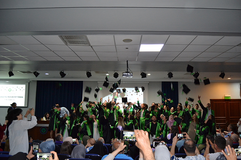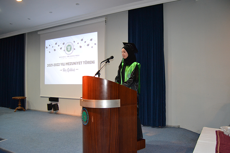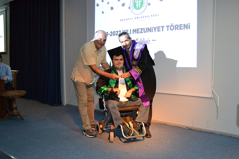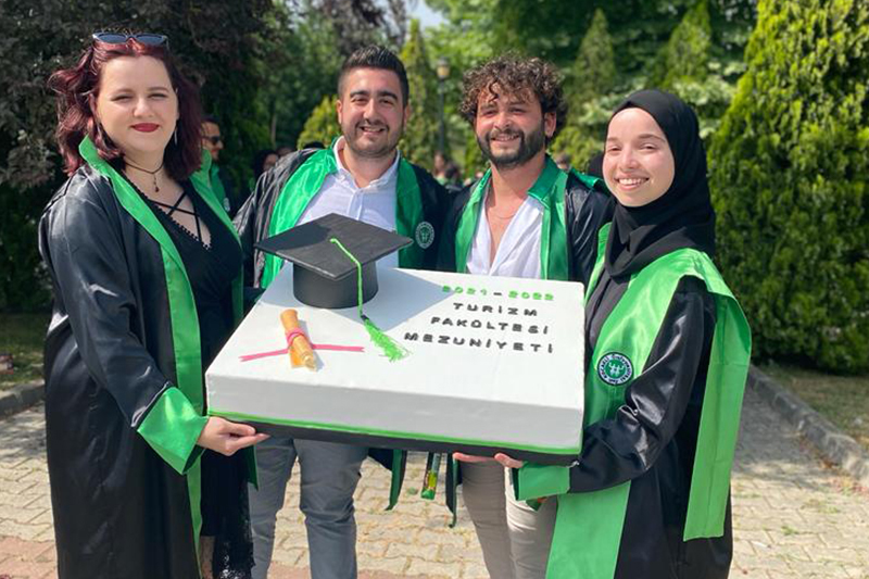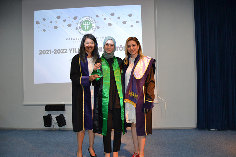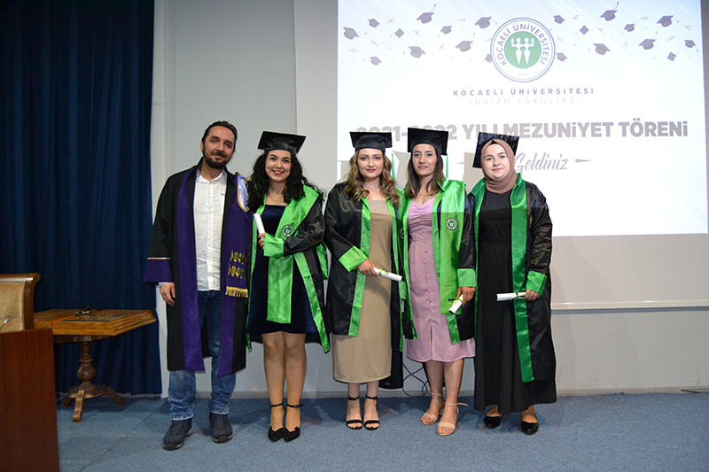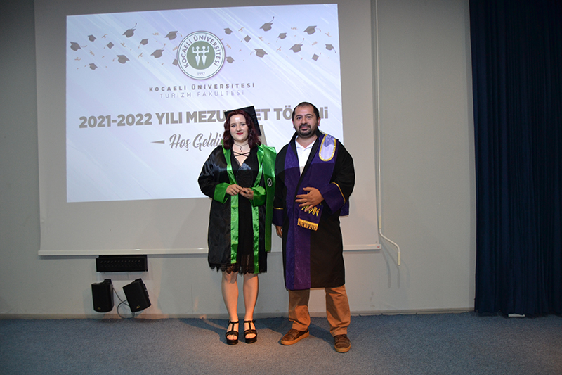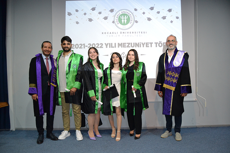 Mezuniyet heyecanının yaşandığı törende, dereceye giren öğrencilere plaket verildi. Mezuniyet kütüğüne 2020-2021 fakülte birincisi Elif Betül Kılıç ile 2021-2022 fakülte birincisi Sena Çengelköy’ün isimlerinin işlenmesinden sonra, öğrencilere mezuniyet belgeleri verildi. Törenin son kısmında gerçekleşen kep atma seremonisinin ardından Turizm Fakültesi bahçesinde öğrencilere ve velilere Gastronomi ve Mutfak Sanatları öğrencilerinin hazırladığı ikramlıklar sunuldu. Fakülte bahçesine Kartepe Belediyesi tarafından kurulan sahnede Turizm Fakültesi araştırma görevlileri Sarp Tahsin Kumlu ve Yaşar Mert Demiral tarafından sunulan canlı müzik ile öğrenciler ve veliler renkli anlar yaşadı.