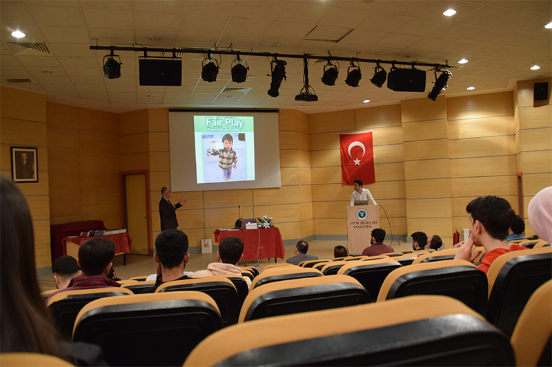 Kocaeli Üniversitesi Spor Bilimleri Fakültesi Beden Eğitimi ve Spor Bölümü Karakter ve Değer Eğitimi Dersi öğrencileri Kadri Enes Güngören ve Berk Özer tarafından organize edilen konferansın moderatörlüğünü Öğr. Gör. Mehmet Zeki Kutlu yaparken konferansa konuşmacı olarak Türkiye Milli Olimpiyat Komitesi Fair Play Konseyi Başkan Yardımcısı Remzi Yılmaz katıldı.
