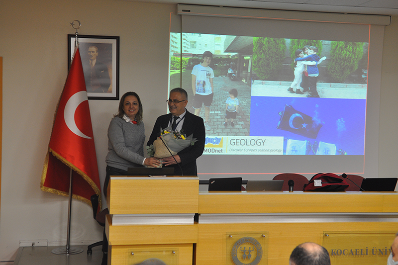 Saygı duruşu ve İstiklal Marşı’nın okunmasıyla başlayan seminerde Prof. Dr. Günay Çifci Türkiye Denizlerindeki Sismik Araştırmalar konusunda sunum gerçekleştirdi.