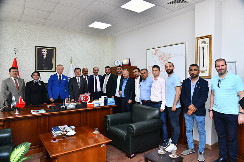 Türkiye Sağlık İşçileri Sendikası (Sağlık-İş) Genel Başkanı Hakan Toy ve beraberindeki sendika üyeleri, üniversitemize gelerek Üniversitemiz Genel Sekreteri Doç. Dr. Mustafa Eren'i ziyaret etti.