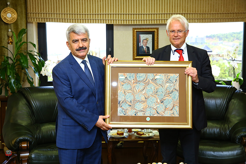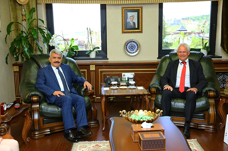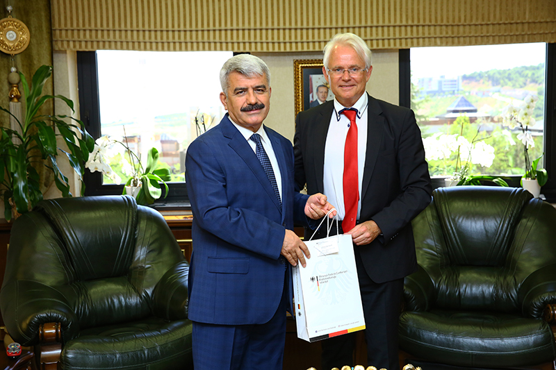 Karşılıklı fikir alışverişinde bulunulan ziyarette Rektörümüz Prof. Dr. Sadettin Hülagü, üniversitemizin güncel durumu ile ilgili olarak Başkonsolos Regenbrecht'i bilgilendirdi. Ziyaretten duyduğu memnuniyeti ifade eden Rektörümüz Prof. Dr. Sadettin Hülagü, nezaketleri dolayısıyla Başkonsolos Regenbrecht'e teşekkür etti.
