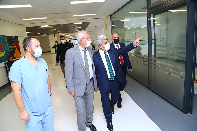 Rektörümüz Prof. Dr. Sadettin Hülagü, Sağlık Bilimleri Üniversitesi Rektörü Prof. Dr. Cevdet Erdöl'ü Kocaeli Üniversitesi Poliklinik ve Tıp Eğitimi Uygulama Merkezi ile Araştırma Laboratuvarları Merkezi’ni gezdirerek yürütülen çalışmalar ile ilgili bilgilendirdi. Ziyarette Rektör Yardımcısı Prof. Dr. Ercüment Çiftçi de hazır bulundu.