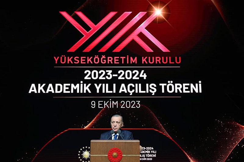 Üniversitenin esas işlevinin, kültür aktarımına ve gelişimine öncülük etmek, döneminin fikirler sistemini inşa etmek, her alanda toplumun seviyesini yükseltmek olduğunu vurgulayan Cumhurbaşkanı Erdoğan, üniversitenin, toplumun ve hayatın dışında değil, tam merkezinde yer aldığının altını çizdi. Üniversiteler vasıtasıyla bilginin, kültürün ve bilimin Türkiye'nin tüm illerine yayılmasını kolaylaştırdıklarını belirten Cumhurbaşkanı Erdoğan, 2023-2024 Akademik Yılı'nın hayır getirmesini temenni etti ve "YÖK 2023 Üstün Başarı Ödüllerini" kazanan akademisyenlere ve üniversitelere ödüllerini verdi.