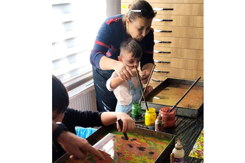 Ziyaret sırasında çocuklar hem Ebru yaparak neşeli vakit geçirdi hem de Kültür Evi’ndeki kurslarda üretilen; Tezhip, Minyatür, Hat ve Ebru eserlerinden oluşan sergiyi gezdiler. Kültür Evi Müdürü Dr. Öğr. Üyesi Yıldırım Karadeniz, bu tarz etkinliklerin yanı sıra toplumun her kesiminden ve her yaşta insanların katıldığı kurslarla KOÜ Kültür Evi olarak topluma katkı sunmaya devam edeceklerini, çünkü medeniyetlerin kuşaktan kuşağa taşınmasında kültür ve sanatın önemli olduğunu, medeniyetteki sanat ve kültürel değerlerin, o toplumun şecerelerinin belgesi olduğunu ifade etti.