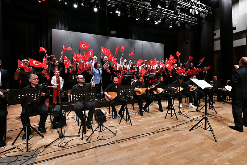 Akademi ve idari personel ile öğrencilerden oluşan Kocaeli Üniversitesi Türk Halk Müziği Topluluğu konseri Kocaeli Üniversitesi Prof. Dr. Baki Komsuoğlu Kültür ve Kongre Merkezi’nde gerçekleştirildi. Cumhuriyetimizin 100. Yıl kutlamaları kapsamında düzenlenen konsere, Rektörümüz Prof. Dr. Nuh Zafer Cantürk, Rektör Yardımcısı Prof. Dr. Elif Öğüt, Tıp Fakültesi Dekanı Prof. Dr. Alparslan Kuş, Genel Sekreter Doç. Dr. Mustafa Eren ile daire başkanları, müdürler, akademik ve idari personel ile öğrenciler katıldı. Konserde, yurdumuzun dört bir yöresinden birbirinden değerli türküler seslendirildi.