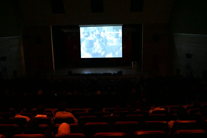 Belgesel gösterimi öncesi Rektörümüz Prof. Dr. Nuh Zafer Cantürk, Senarist ve Yönetmen Öğr. Gör. Hacı Mehmet Duranoğlu ile belgeselin proje ekibine teşekkür belgesi takdim etti. Tarihi görüntülerin yer aldığı ve işgal günleri ile başlayan belgeselde; Gazi Mustafa Kemal Atatürk’ün notlarından kesitler yer alırken, Türkiye Büyük Millet Meclisi’nin açılış öyküsü, Kurtuluş Savaşı Mücadelesi görüntüleri ve Türkiye Cumhuriyeti’nin kuruluşu süreci izleyicilere aktarıldı.