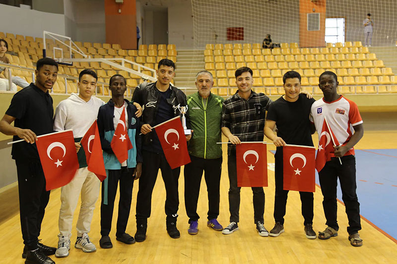 Dostluk maçında gösterdikleri yoğun mücadele için misafir öğrencilere Spor Bilimleri Fakültesi Öğr. Gör. Engin Çetin, Dostluk maçı şampiyonu Türk-Karma takımı öğrencilerine ise ödül kupalarını Prof. Dr. Bergün Meriç takdim etti.