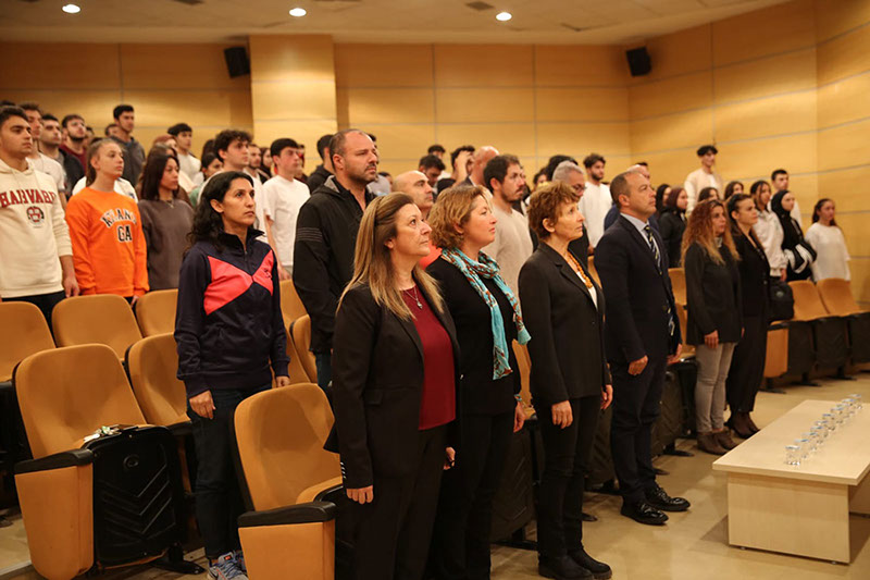 Saygı Duruşu ve İstiklal Marşı'nın ardından, Prof. Dr. Kürşad Sertbaş, 100. Yıl Etkinlikleri kapsamında yapılan sempozyuma katılım gösteren öğrencilere teşekkürlerini sunup başarılar diledi.