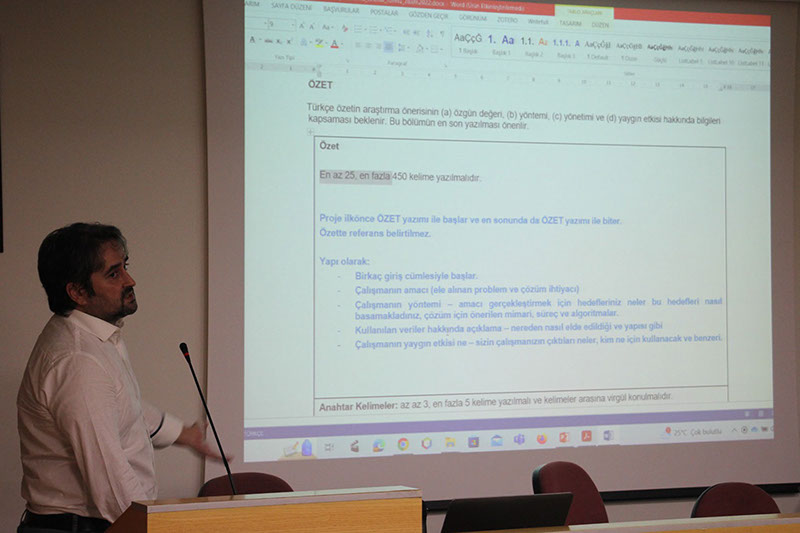 Kocaeli Üniversitesi Mühendislik Fakültesi Öğretim üyeleri Prof. Dr. Ahmet Sayar, Dr. Öğr. Üyesi Burcu Kır Savaş ve İzmit MYO Öğr. Üyesi Doç. Dr. Erhan Gengeç’in konuşmasıyla devam eden etkinlikte TÜBİTAK tarafından başlatılan "2209 A/B Üniversite Öğrencileri Araştırma Projeleri Destekleme Programı" hakkında katılımcılara detaylı bilgi sunuldu. Programın, lisans öğrencilerini araştırma projeleri yoluyla teşvik etmeyi ve ön lisans öğrencilerine proje hazırlama kültürünü kazandırmayı amaçladığı vurgulandı. Soru cevap ardından oturum sonlandırıldı.