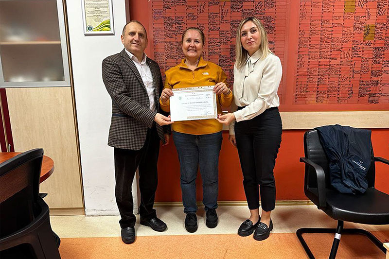 Peyzaj ve Bahçe Eğitimi konulu programa Ziraat Fakültesi Öğretim Üyesi Doç. Dr. Melekber Sülüşoğlu Durul eğitimci olarak destek verirken, İç Hizmetler Şube Müdürü Ergün Sarıcı ve Hizmet İçi Eğitim Şube Müdürü Canan Temizer tarafından Ziraat Fakültesi Öğretim Üyesi Doç. Dr. Melekber Sülüşoğlu Durul’a eğitime verdikleri destekten ötürü teşekkür belgesi verildi.