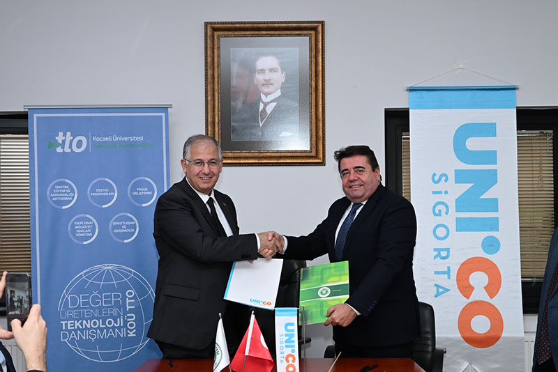 Kocaeli Üniversitesi Rektörlük makamında düzenlenen imza töreninde; Unico Sigorta’dan Murat Tuvay ile Hande Solak, KOÜ Rektör Yardımcısı Prof. Dr. Elif Öğüt, KOÜ TTO Müdürü Doç. Dr. Mihriban Civan ile TTO yetkilileri de hazır bulundu.