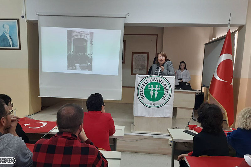 Programda Kocaeli Üniversitesi Atatürk İlkeleri ve İnkılap Tarihi Bölümü Öğretim Elemanı Öğr. Gör. Berrin Tuncay tarafından Atatürk ve Cumhuriyet konulu sunum gerçekleştirildi. Öğrencilerin şiir dinletisi ve hep bir ağızdan marş söylemleri ile kutlama sonlandı.