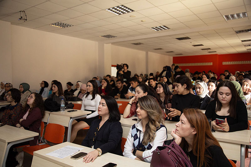Açılış konuşmasını yapan Öğr. Gör. Binnur Turan, etkinliğin işleyişi hakkında bilgi verip katılım gösteren herkese teşekkürlerini sundu. Ardından etkinlik, Dr. Öğr Üyesi Rüştü Taştan'ın sunumu ile devam etti.
