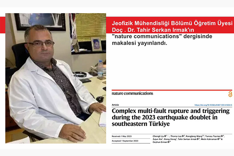 6 Şubat 2023 Kahramanmaraş Depremlerinin (Mw7.8 ve Mw7.7) kinematik yırtılma modellemesini yapan Çin, ABD ve Türk bilim insanlarının elde ettiği sonuçlar, doğa bilimleri alanında yüksek kalitedeki araştırmaları yayınlayan “Nature Communications” dergisinde yayınlandı. Kocaeli Üniversitesi Mühendislik Fakültesi Jeofizik Mühendisliği Bölümü öğretim üyesi Doç. Dr. Tahir Serkan Irmak’ın da içinde bulunduğu ekip, sismolojik ve jeodezik verileri kullanarak, depremdeki yırtılmanın özelliklerine dair oldukça önemli sonuçlara ulaştı.