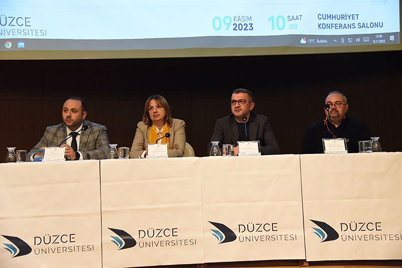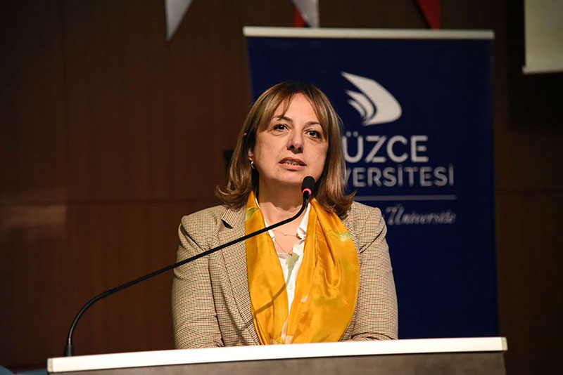 Kocaeli Üniversitesi Jeofizik Mühendisliği Bölümü Öğretim Üyesi Prof. Dr. Fadime Sertçelik, afeti bir olayın kendisi değil, doğurduğu sonuç olarak tanımlayarak geçmiş depremlerden çıkarımlar ve gelece bakış noktasında sunumunu gerçekleştirdi. Türkiye tarihindeki en büyük depremlerin özellikleri ve sahadaki gözlemlerinden bahseden Prof. Dr. Fadime Sertçelik, Düzce’nin depremselliği ile konuşmasını noktaladı.