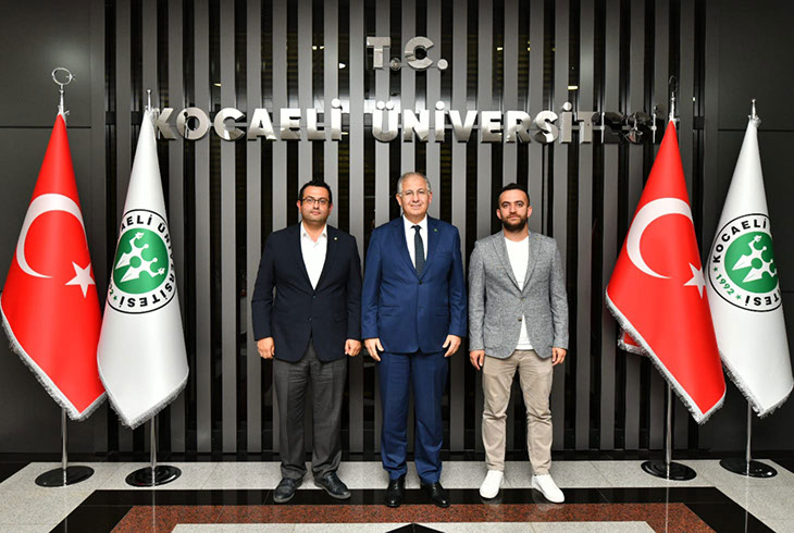 İnşaat Mühendisleri Odası Başkanı Ali Akgün ve Yönetim Kurulu Üyesi İsmail Yaruk, Rektörümüz Prof. Dr. Nuh Zafer Cantürk'e nezaket ziyaretinde bulundu.