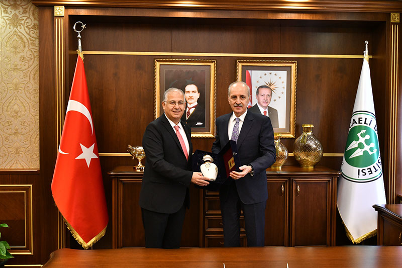 Kocaeli Üniversitesi 2023 – 2024 Akademik Yılı Açılışı Töreni’ne katılmak üzere üniversitemize teşrif eden Türkiye Büyük Millet Meclisi (TBMM) Başkanı Prof. Dr. Numan Kurtulmuş, Rektörümüz Prof. Dr. Nuh Zafer Cantürk’ü de makamında ziyaret etti.