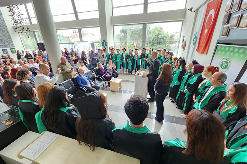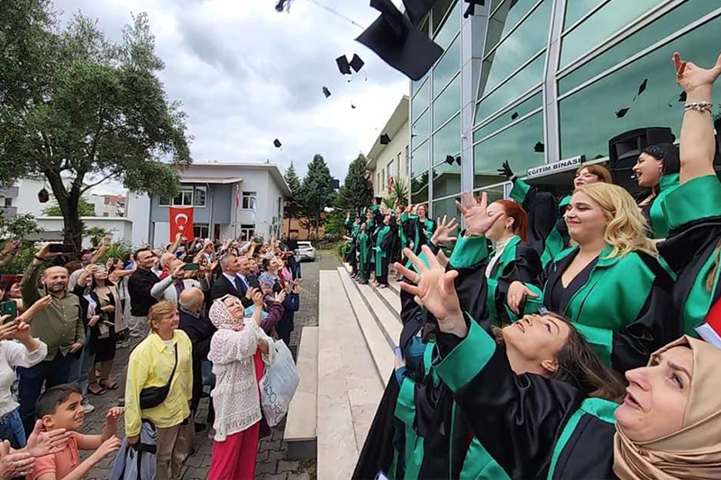 Dereceye giren Okul birincisi Duygu Mayruk, Okul ikincisi Dilara Çetiner ve Okul üçüncüsü Süreyya Çetin’e ve diğer mezun öğrencilerin mezuniyet heyecanı yaşadığı törende, mezun öğrenciler anı belgelerini öğretim elemanlarından alırken, tören öğrencilerin hep birlikte kep atması ile sona erdi.